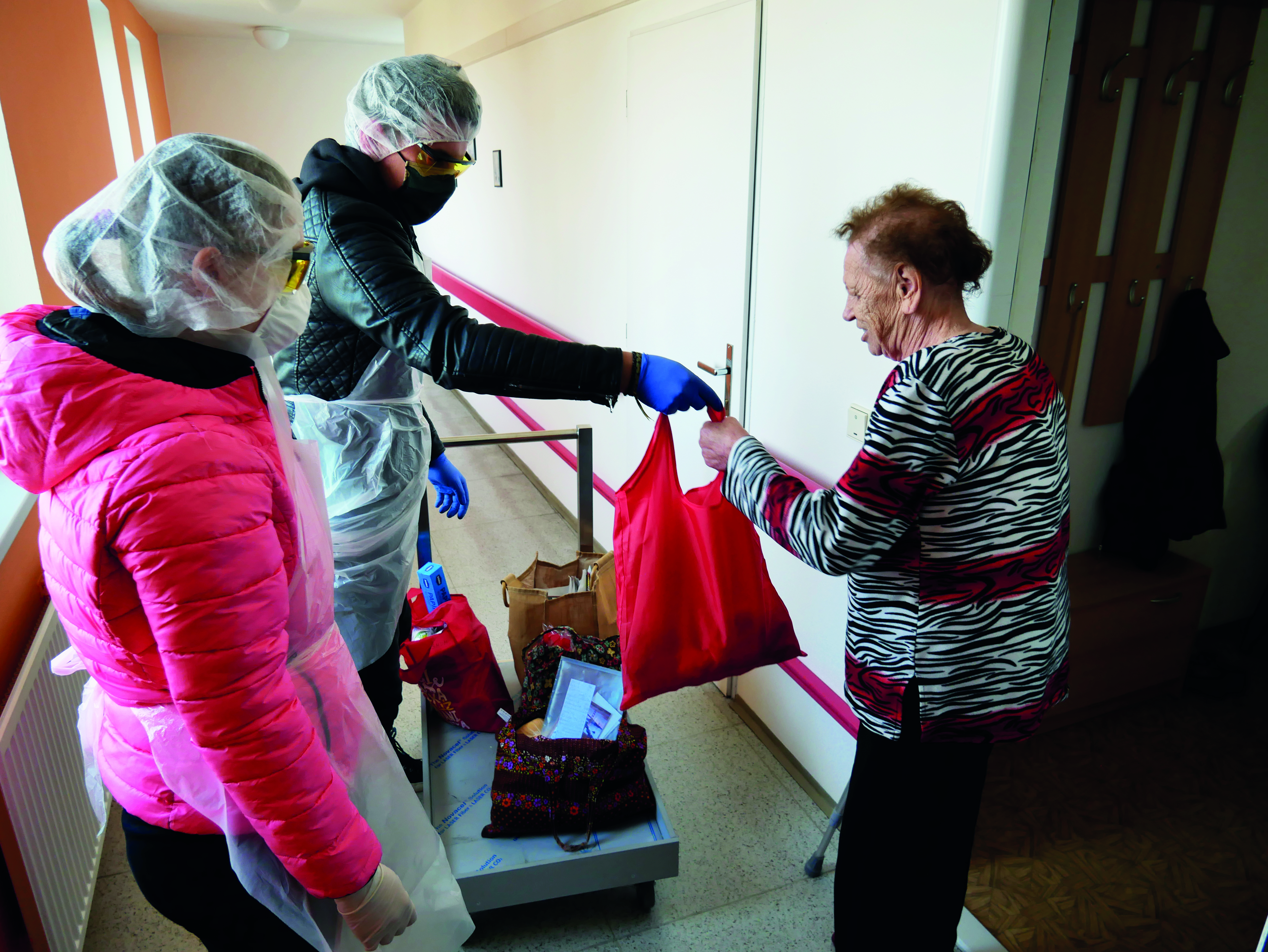 Další pomoc se zásobováním ochranných pomůcek přichází pravidelně z Kraje Vysočina, z Asociace poskytovatelů sociálních služeb, a z dalších institucí ve spolupráci s MPSV. Také bych se ráda zmínila o spolupráci s Univerzitou Palackého, která poslala seniorům hravé ilustrace pro vyplnění volného času, díky kterým mají možnosti si vyzkoušet či v sobě objevit něco nového z oblasti tvorby a kreativity. I Masarykova univerzita nám nabídla pomoc přes svoje studenty zdarma, s možností dovozu dezinfekce a roušek.
