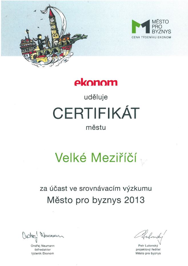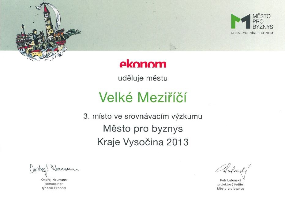Dlouholetým vítězem soutěže Město pro byznys je na Vysočině Humpolec, druhou příčku obsadil Pelhřimov a třetí je právě Velké Meziříčí. "Rozhodně se budeme snažit, aby naše výsledky od nynějška byly vždy ještě lepší. Ocenění chápu zejména jako uznání především pro samotné firmy a jejich snahu přetvářet naše město k lepšímu a spolupracovat s vedením města," uzavřel místostarosta Josef Komínek, který ocenění tento týden za město převzal.