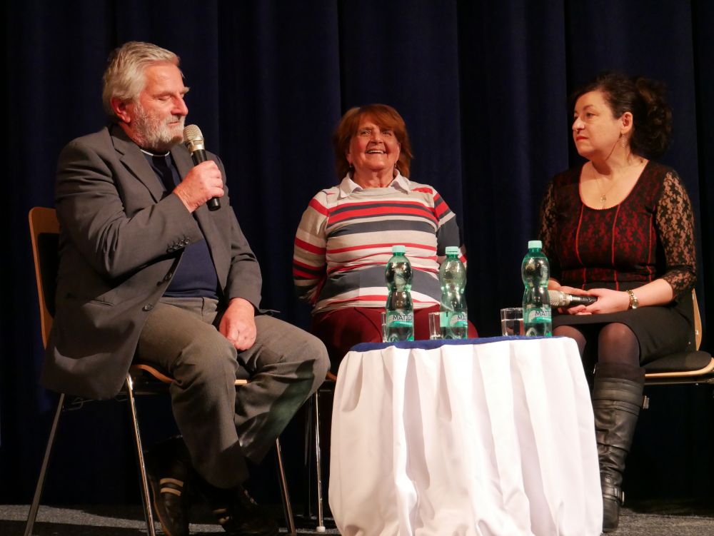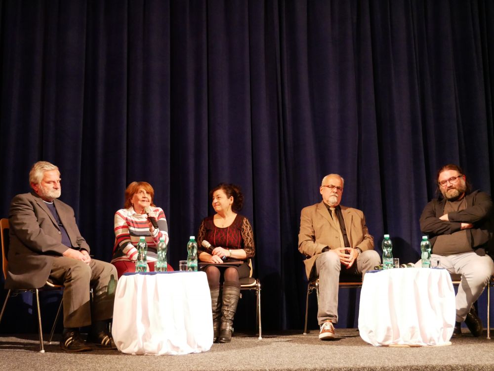 Závěr programu patřil besedě s osobnostmi z dokumentu, na kterou přijali pozvání bývalá profesorka velkomeziříčského gymnázia Jiřina Kácalová, bývalý místostarosta města Vilém Lavický, učitel Emanuel Míšek a kazatel Českobratrské církve evangelické a bývalý zastupitel Velkého Meziříčí Joel Ruml.