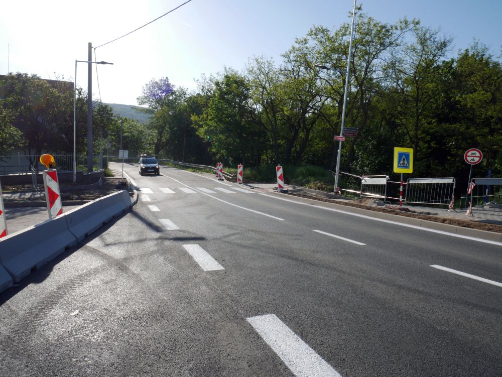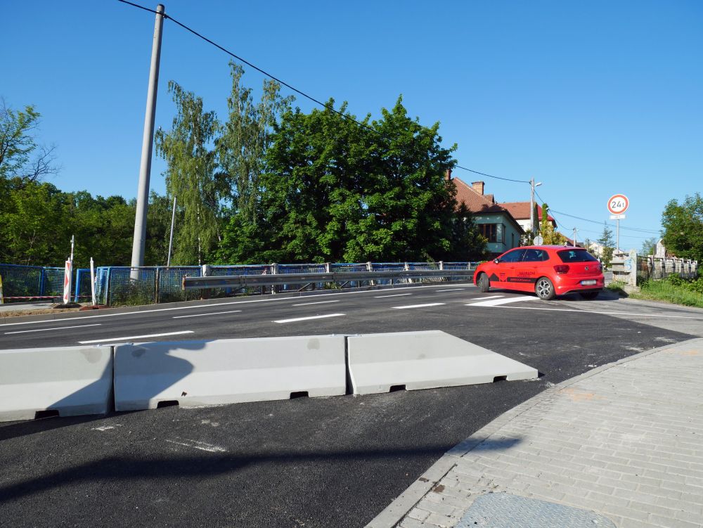 Nově je silnice ze směru od centra města slepou ulicí, v opačném směru upozorňují řidiče na změnu betonová svodidla, která přepažují ulici.