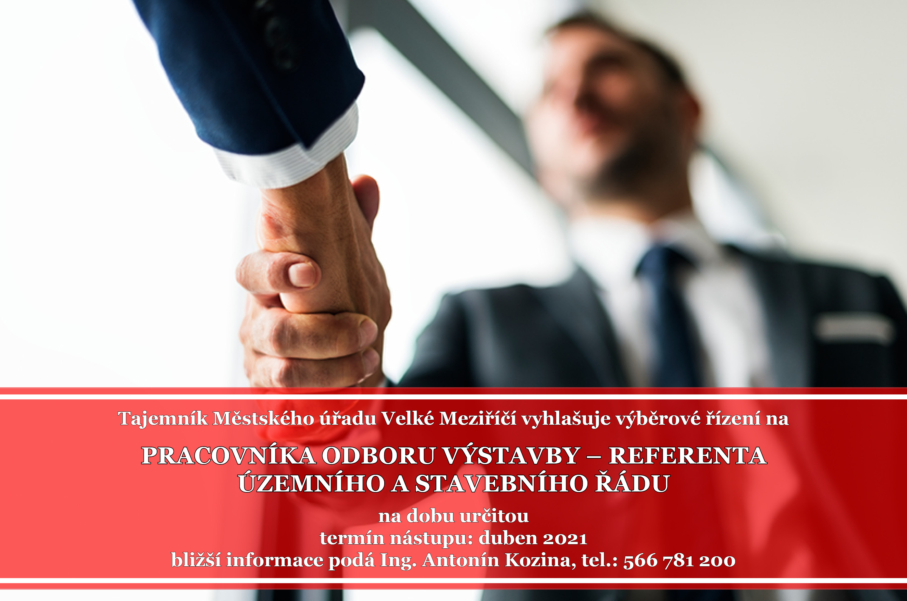 Tajemník Městského úřadu Velké Meziříčí vyhlašuje výběrové řízení na pracovníka odboru výstavby – referenta územního a stavebního řádu.