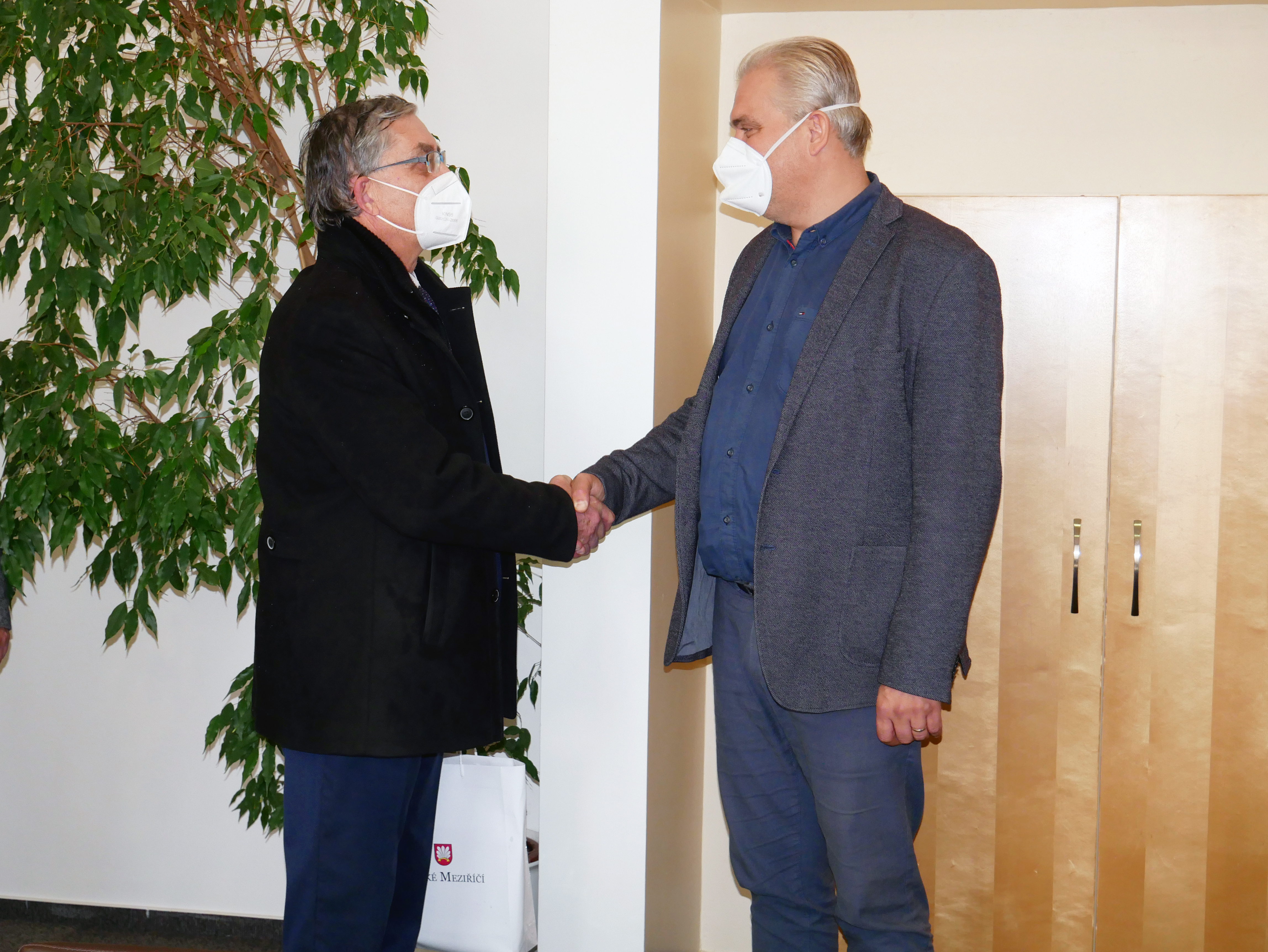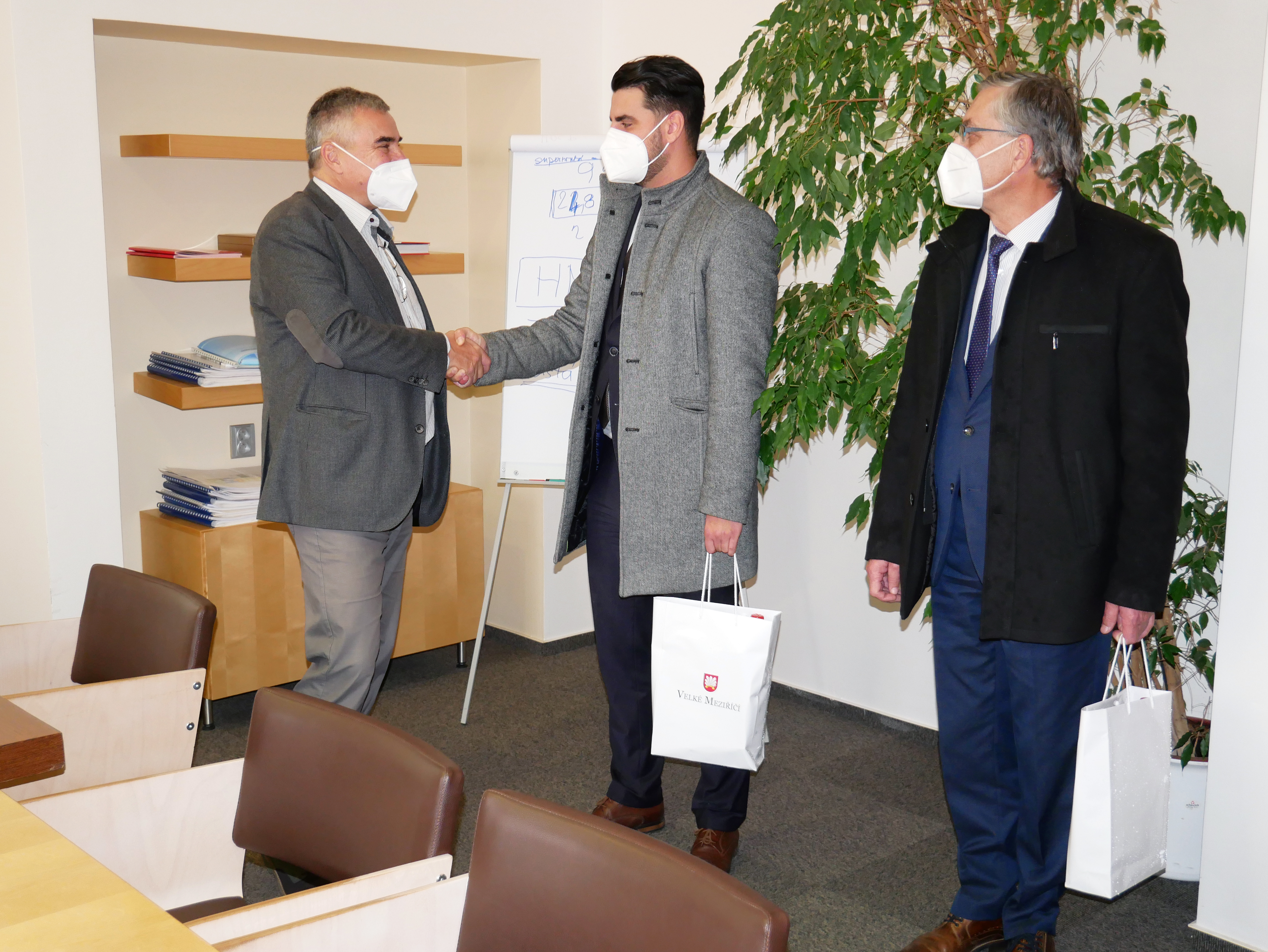 K přátelskému setkání a předání drobných darů došlo ve čtvrtek 21. října v dopoledních hodinách. „Moc vám děkujeme za to, že jste nám poskytli bezchybný servis při očkovacím místu, které jsme díky vám mohli pro své občany zřídit jakožto jedna z mála obcí v Kraji Vysočina, která nemá krajskou nemocnici. A ačkoliv pan profesor Ludka od nás již jedno poděkování dostal, tak si myslím, že jednou je málo, protože se v našem městě podařilo naočkovat více než tři tisíce lidí a spolupráce s vámi byla v tomto ohledu vždy perfektní," sdělil řediteli Fakultní nemocnice Brno, prof. MUDr. Jaroslavu Štěrbovi, Ph.D. starosta Velkého Meziříčí Ing. arch. Alexandros Kaminaras.