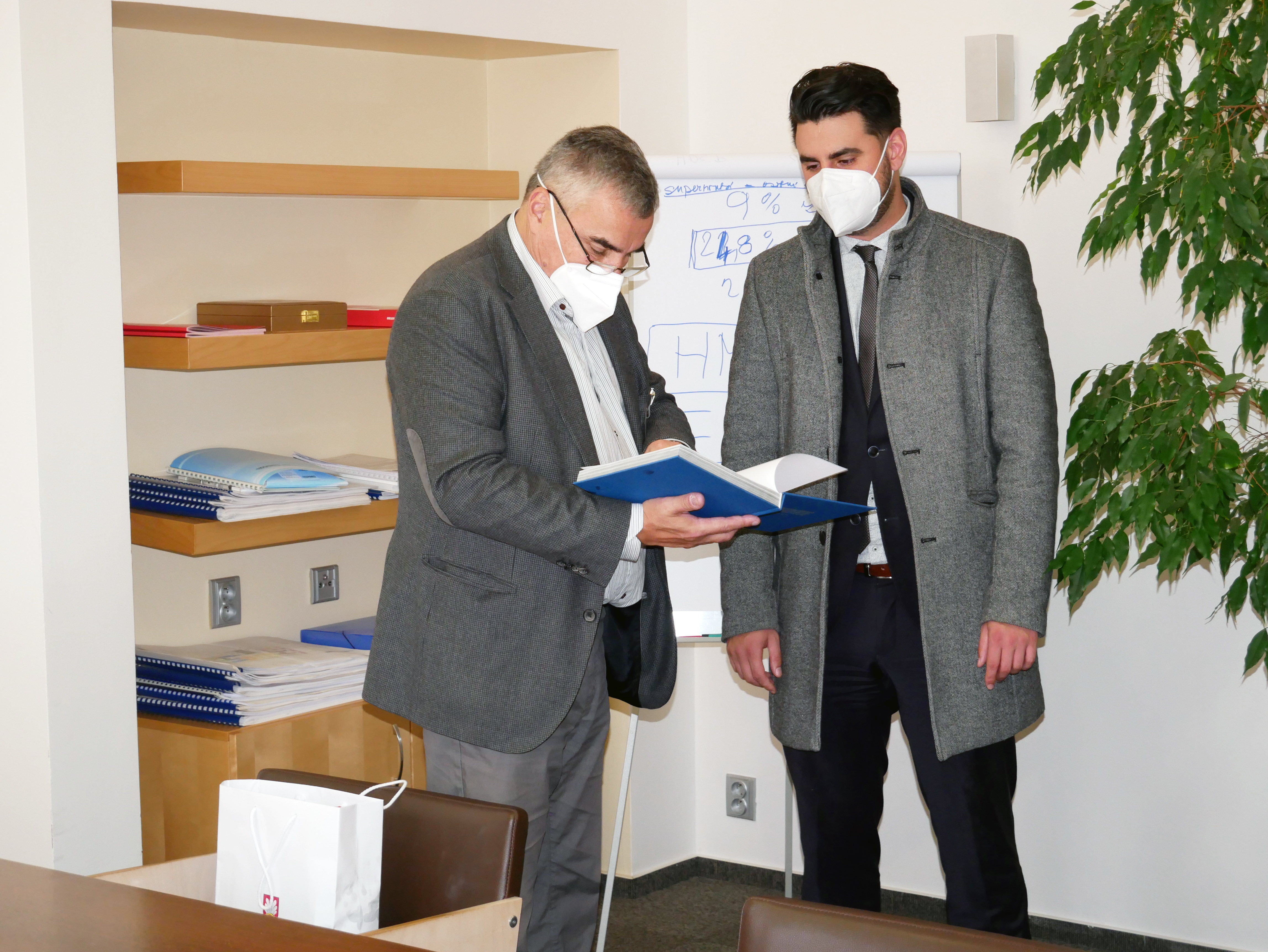 Jeho slova doplnil místostarosta města Ing. František Smažil směrem ke zdravotnickému náměstku, prof. MUDr. Ondřeji Ludkovi, Ph.D.: „Jako malou formu velkého poděkování přijměte i vy dar za to, že jste byl prvním člověkem, s nímž byli zastupitelé našeho města v kontaktu a rovněž za to, že díky vám se očkovací místo rozjelo do těch krásných čísel, které svědčí o tom, že celá záležitost byla ku prospěchu našich občanů."