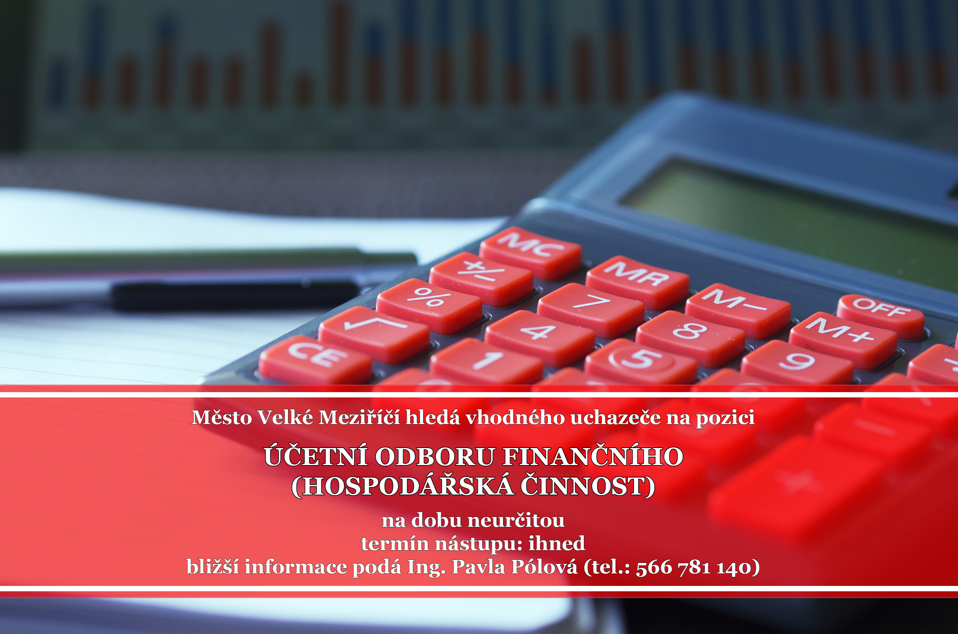 Tajemník Městského úřadu Velké Meziříčí vyhlásil veřejnou výzvu na pozici účetní odboru finančního (hospodářská činnost).