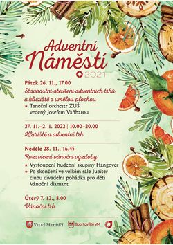 Slavnostní rozsvícení stromečku proběhne v neděli 28. listopadu v 16:45 hodin. Už v pátek 26. listopadu však Náměstí ožije adventními trhy, jejich otevření se ujme patron akce starosta města Alexandros Kaminaras. Adventní trhy i kluziště s umělým povrchem mohou občané navštěvovat pravidelně až do začátku ledna.