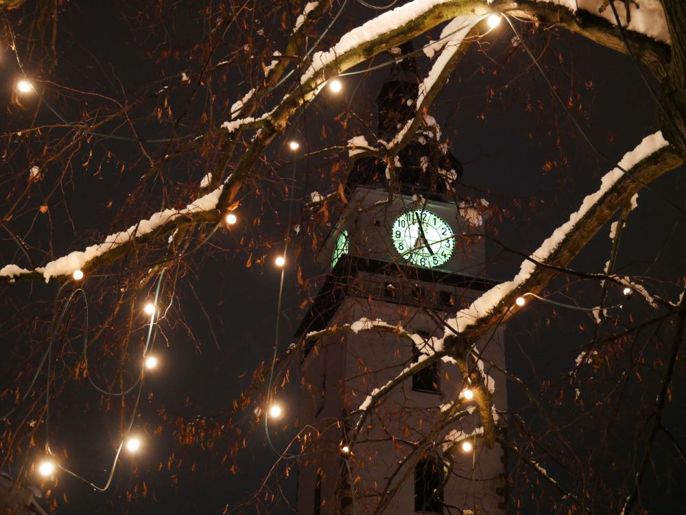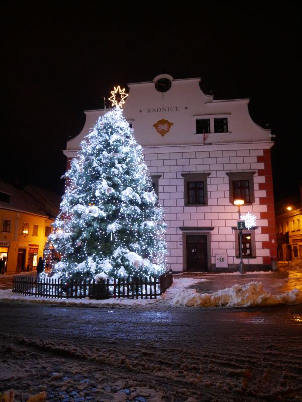 V páteční podvečer se na malém pódiu slova ujali hlavní představitelé města, ředitel Jupiter clubu Milan Dufek, místní farář Pavel Šenkyřík a ředitel Sportoviště VM Michal Hořínek. Společnými silami zahájili advent rozsvícením stromu. Jedle ojíněná, kterou přivezli pracovníci technických služeb z nedaleké obce Oslavičky, září letos v bílé barvě. Po následující dvě léta se osvětlení bude měnit. Barevná kombinace pro příští rok zůstane ovšem pro občany překvapením.