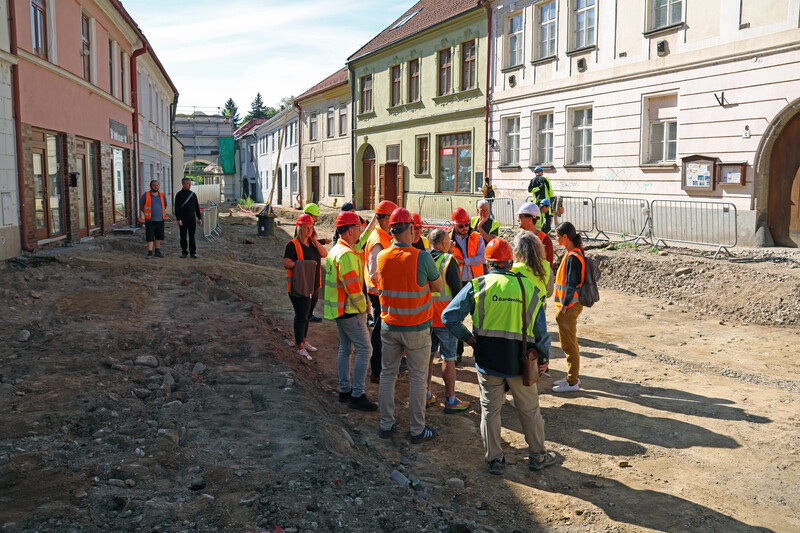Kanalizace a vodovod v Komenského a Kostelní ulici jsou hotové. Začne stavba nových chodníků a zábradlí při soutoku řek, která omezí chodce. Archeologové objevili mezi hroby u kostela kamenný nástroj.