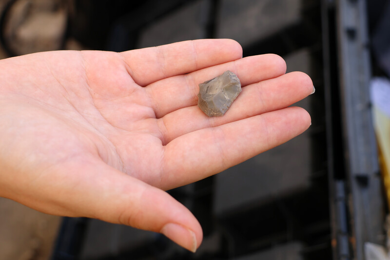 „Našli jsme zbytek jádra rohovce stejného typu, jaký se nachází v Olomučanech, kde je doložená pravěká dílna. V období mezolitu šlo o oblíbenou surovinu pro výrobu nástrojů. Na tomto zbytku jádra jsou ze všech stran krásně vidět stopy po úderech a odštěpování,“ informoval Milan Vokáč z Muzea Vysočiny Jihlava a dodal: „Představte si, že pravěký člověk se vydal na dvou až třídenní pochod z oblasti Velkého Meziříčí do Moravského krasu, aby si sem donesl připravené jádro, z nějž těžil polotovary pro své nástroje.“ Mezi nalezenými materiály pro výrobu kamenných nástrojů, které nesou stopy činnosti pravěkého člověka, jsou však třeba i křemen z oblasti pouhých 5 až 10 kilometrů vzdálené, ale také silicit z oblasti Poodří získaný v morénách, které dovlekl severský ledovec až z Baltu. Archeologové objevili i větší kus grafitu, který se přidával do keramického těsta. „Podle toho lze usuzovat, že tu existovala hrnčířská dílna, která tuhovou keramiku vyráběla,“ míní Vokáč a přidává další zajímavost: „První skutečný nástroj, ne jen polotovar, který jsme na náměstí nalezli, je čepelové škrabadlo. Je na něm poznat místo, kde bylo přilepené smolou do držadla. Mohlo sloužit například na odškrabování zbytků masa z kostí nebo tuku z kůží při jejich zpracování.“ K čemu skutečně sloužilo lze určit až po podrobnějším zkoumání nalezeného nástroje.