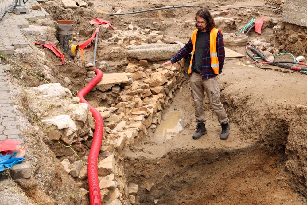 Při prohlídce hřbitova kolem kostela si lidé mohli na základě komentáře archeologa představit, jak prostor asi vypadal. Kdysi tu byl příkop s valem, jehož pozůstatky jsou patrné ve výkopech. Kopíruje jej hřbitovní zeď, která vznikla až později, a souběžně vedle ní pak další, mladší hřbitovní zeď. „Ohrazení místa má tři fáze, možná i víc. Opevnění vznikalo v době, kdy město ještě nemělo hradby, takže příkop s valem i zdi měly funkci ochrannou. Zjistili jsme, že už na počátku 13. století tu nějaký kostel, asi dřevěný, musel být,“ vysvětlil archeolog a dodal, že z výzkumu zatím nejsou žádné závěry, neboť neustále probíhá.