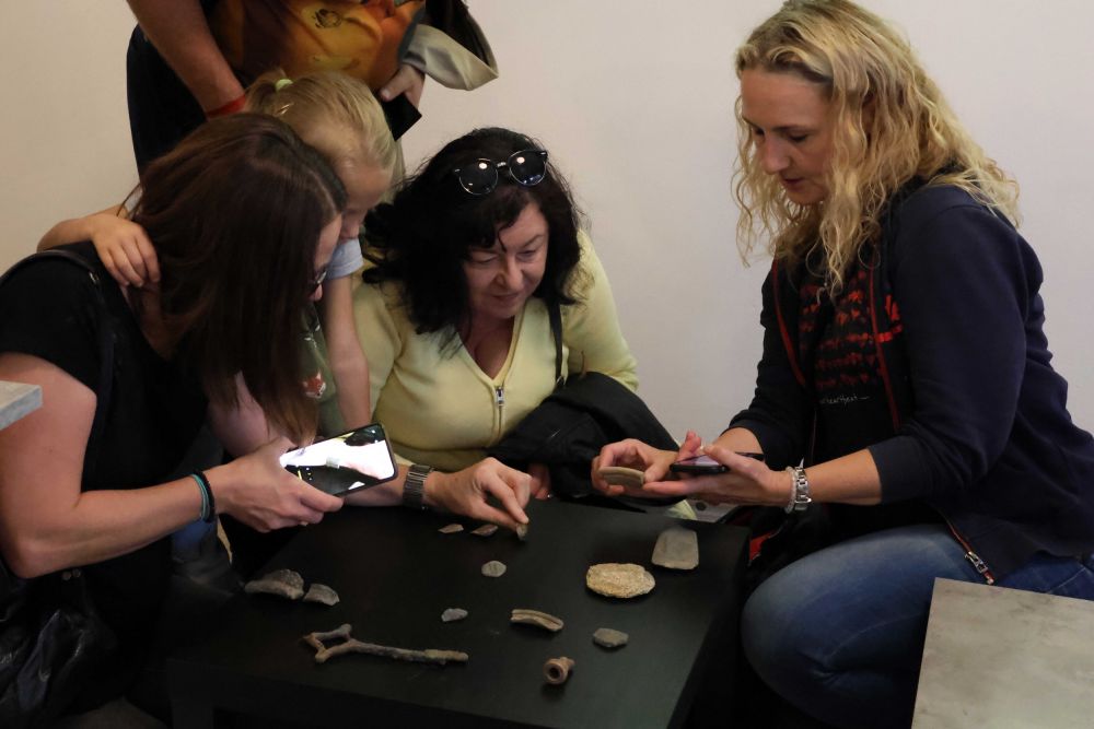 Účastníci setkání se dozvěděli spoustu dalších informací, prohlédli si staré plány města, osahali industriální štípané kamenné předměty z období pozdního paleolitu a mezolitu, které dokládají osídlení místa na soutoku Balinky a Oslavy v době kamenné, viděli řadu drobných předmětů, jako jsou spony na oděvy, hrací žetony, klíč, keramické střepy z různých období, krajka, pečetidlo a podobně.