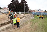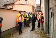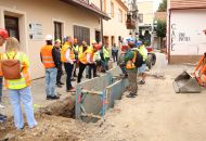 V Komenského ulici finišují své práce plynaři, kteří za týden prostor uvolní, aby firma Gardenline mohla začít navážet a hutnit konstrukční vrstvy pro budoucí dlažbu. Plynaři se mezitím přesunou do Kostelní ulice.
