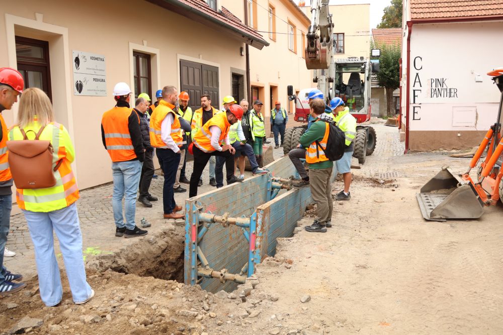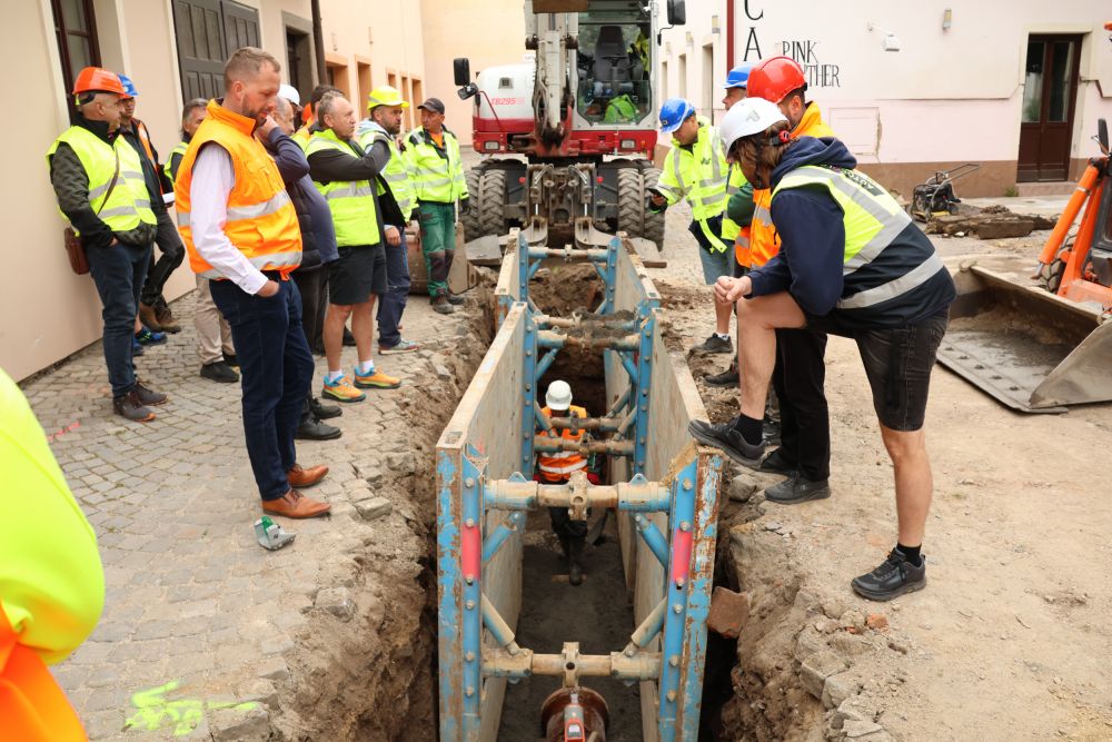 Stavba kanalizace zatím postupuje na Rozkoši a také z Komenského ulice směrem k náměstí. Na parkovišti u Kotvičky proběhne v příštím týdnu usazení podzemních odpadních kontejnerů, které přinesou modernější a estetičtější řešení pro sběr odpadu v centru města.
