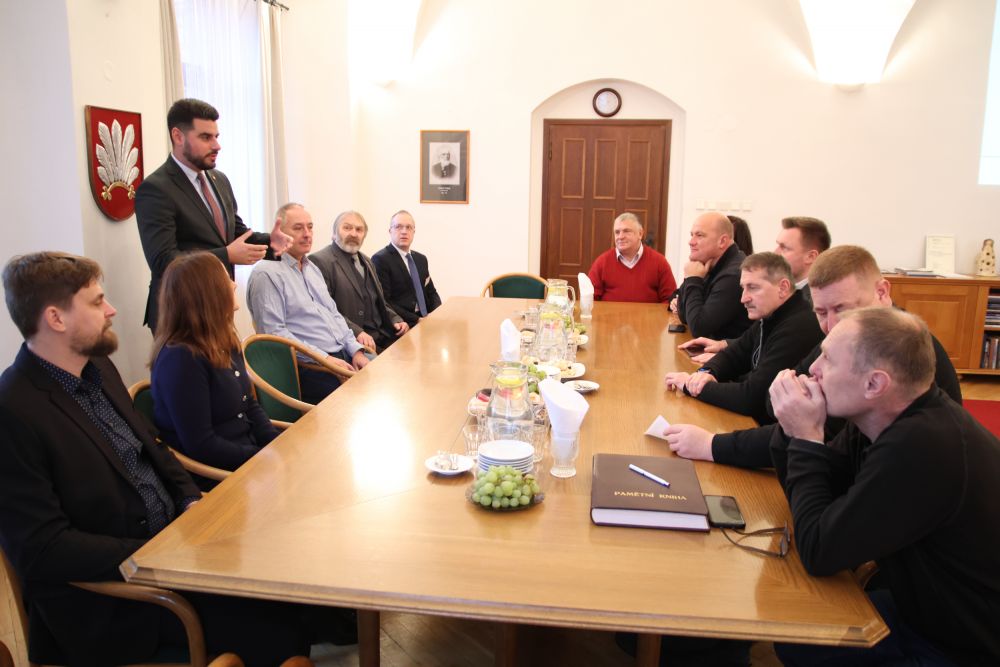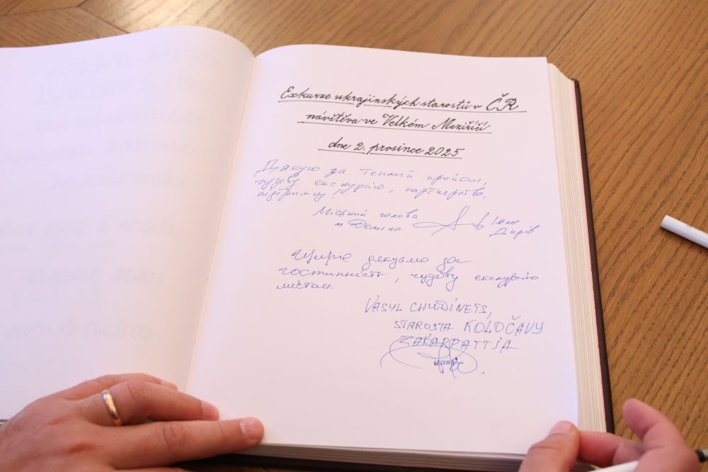 Osm starostů a jedna starostka z měst Apostolove, Brusyliv, Čortkiv, Dolyna, Drohobyč, Koločava, Konotop, Kopyčinci a Kosiv dorazili v úterý 2. prosince do Velkého Meziříčí. Desátý účastník, starosta Izjumu v Charkivské oblasti, se musel na poslední chvíli omluvit kvůli dramatickému vývoji situace na východě země. Na radnici je přivítal starosta Alexandros Kaminaras společně s radními Andreou Vašíčkovou, Liborem Benešem, Tomášem Bílkem a Josefem Prokopem. Hostům představil Velké Meziříčí – od klíčových momentů jeho historie přes fungování samosprávy až po aktuální projekty, jejich přínosy i úskalí. „Ve srovnání s vámi ale žádné problémy nemáme,“ dodal Kaminaras. „Spíše se máme dobře, a ne vždy si toho vážíme.“