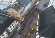 Prostor pod radnicí a u kostela nyní stavebníci chystají pro archeology. Ti by měli v příštím týdnu nastoupit, aby v předstihu prozkoumali místa budoucích výkopů pro kontejnery a vsakovací objekt.