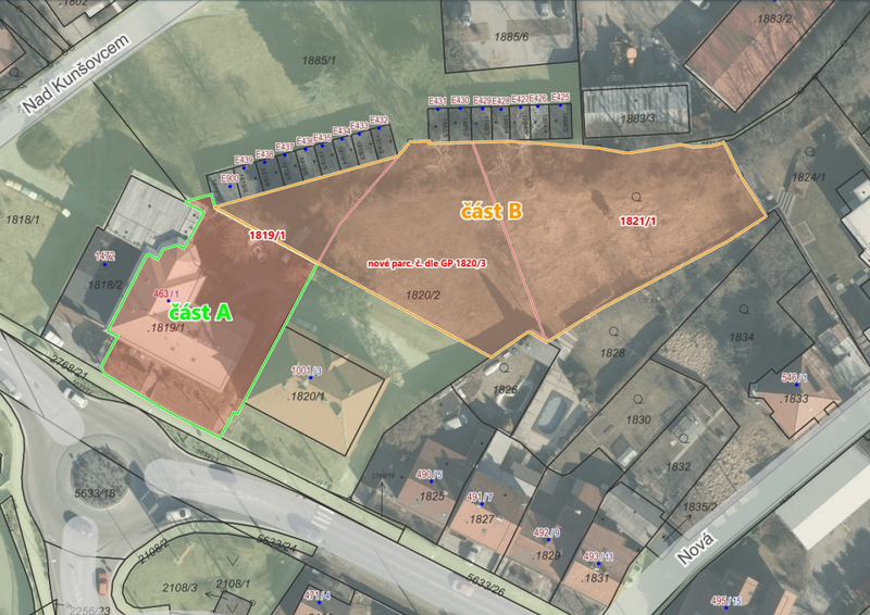 Pozemky lze rozdělit na dvě relativně samostatné části. Část A tvoří plně zasíťovaný pozemek o výměře 892 m2 se zděným domem, v němž jsou čtyři byty (tři 1+1 a jeden 3+1) – ty jsou v současné době prázdné. Dům je starý víc než 100 let a jeho technický stav je zhoršený. Poslední úprava proběhla v roce 1990. Druhou část B tvoří pozemek o celkové velikosti 2 152 m2, který je v mírném travnatém svahu porostlém několika dřevinami. Pozemek lze připojit na sítě.