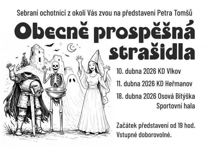 Sebraní ochotníci z okolí Vás zvou na představení Petra Tomšů.